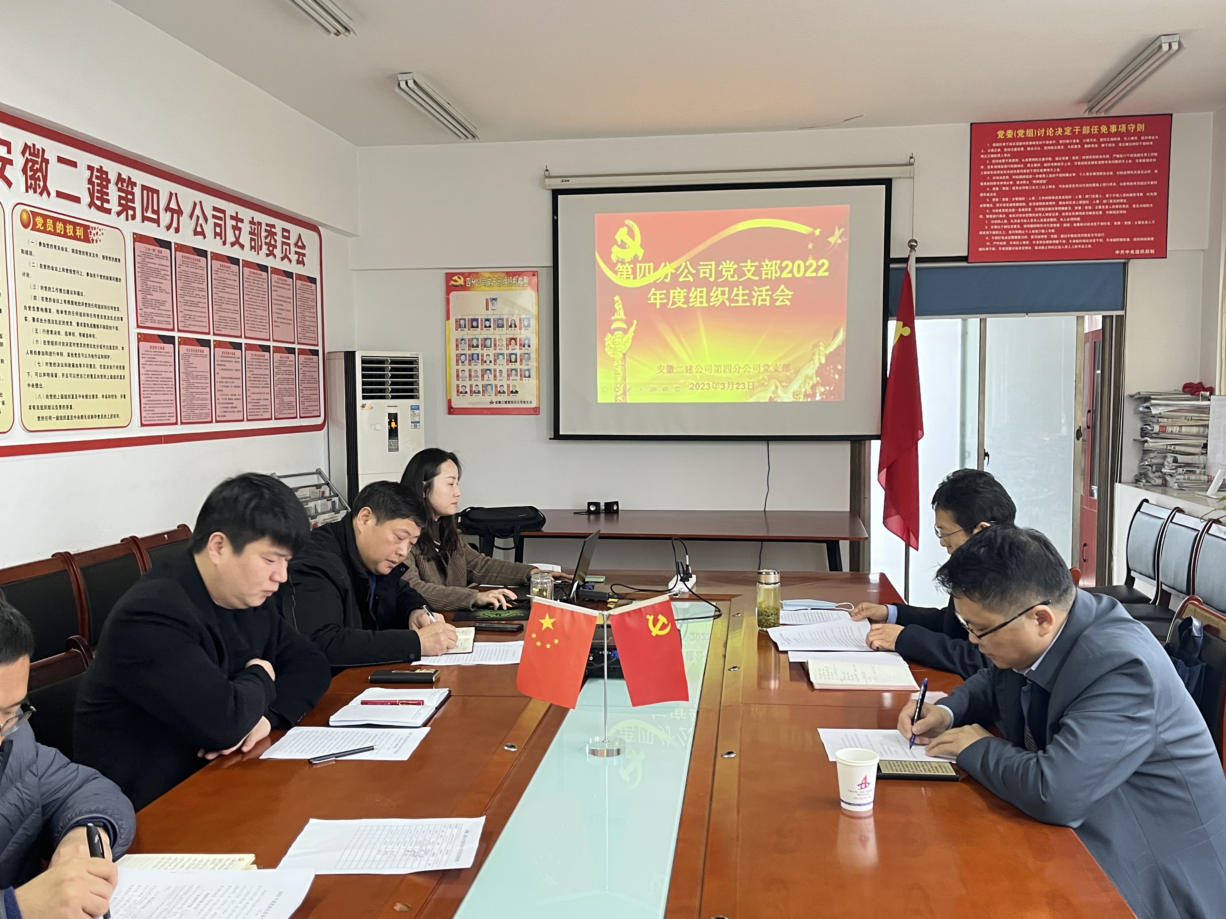 3月23日上午,按照公司黨委統一部署,第四分公司黨支部在會議室召開了2022年度支部組織生活會。公司黨委副書記、總經理李建成到會指導,分公司支委成員參會。