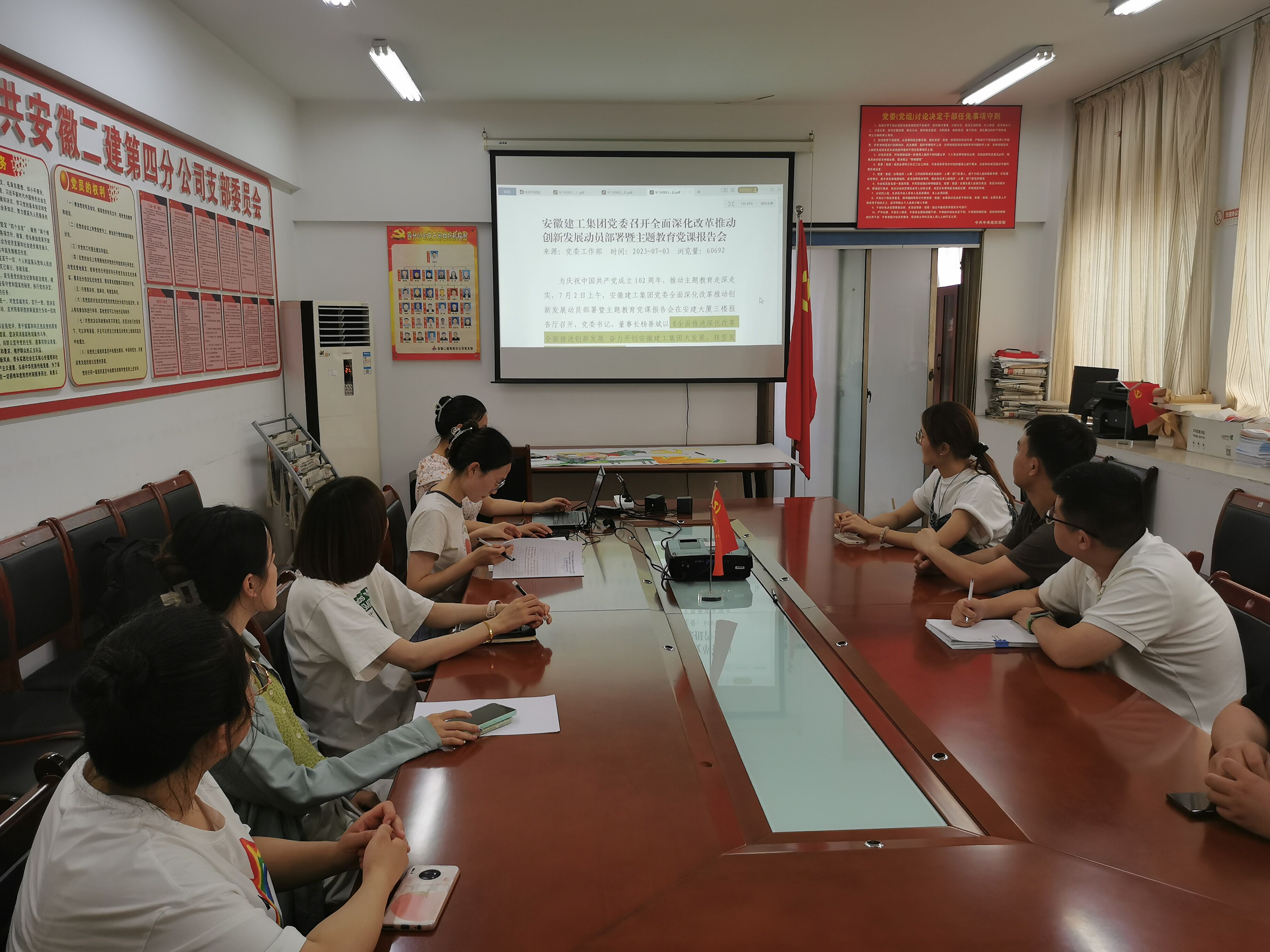 7月18日下午,建工二建第四公司團支部召開專題學(xué)習(xí)會,組織團員青年深入開展學(xué)習(xí)貫徹集團全面深化改革推動創(chuàng)新發(fā)展動員部署暨主題教育黨課報告會會議精神。