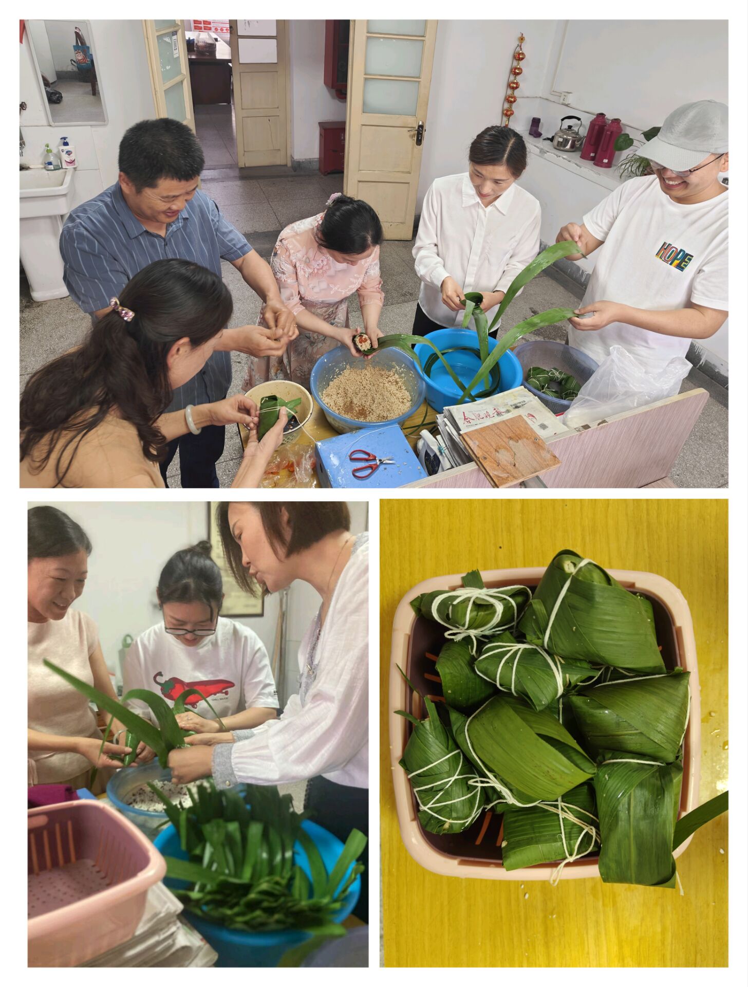 活動現場,粽葉、糯米、絲線等材料整齊擺放,同事們紛紛踴躍參與。大家圍坐在一起,相互交流包粽子的技巧和經驗,現場充滿了歡聲笑語。無論是經驗豐富的“包粽達人”,還是初次嘗試的新手,都全心投入,努力讓自己手中的粽葉變成一個個飽滿可愛的粽子。