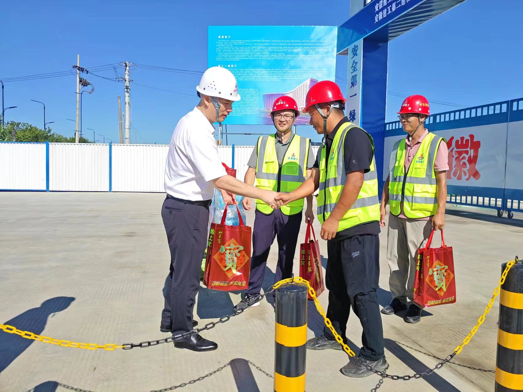 在項目現場,朱忠明詳細了解項目整體建設進度,認真檢查項目安全生產措施落實及人員工作生活保障情況,親切看望慰問一線建設者并送上防暑降溫用品,叮囑大家做好防暑降溫,注意勞逸結合,加強防護,確保自身安全和健康。