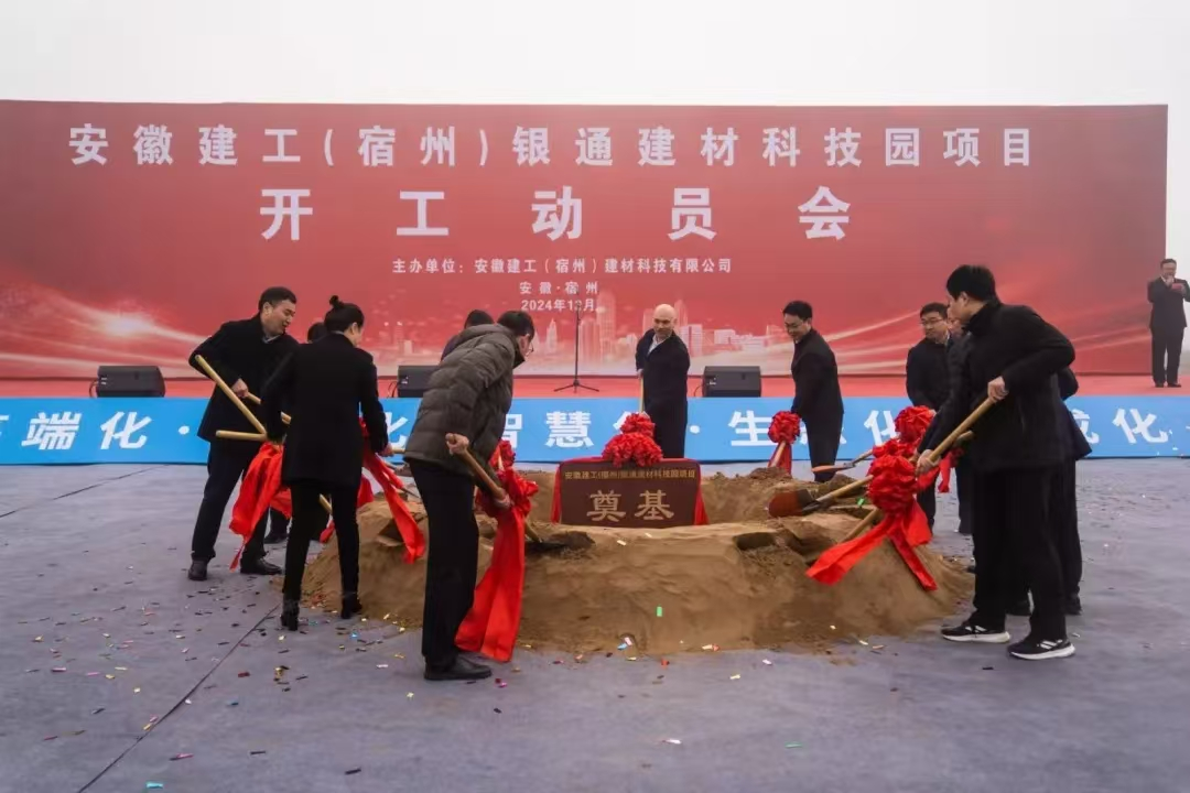 2024年12月6日,安徽建工承建的宿州銀通建材科技園項目開工儀式隆重舉行。建工股份黨委委員、副總經理,公司黨委書記、董事長朱忠明出席儀式并致辭。