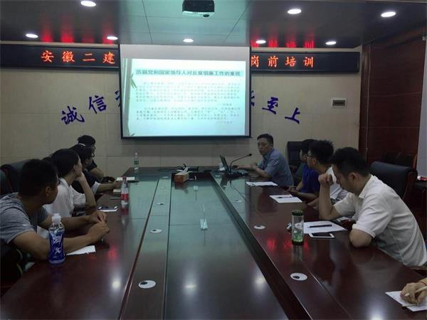 6月19日,安徽二建紀委對新入職員工進行了崗前廉潔從業教育培訓,首次將廉潔自律作為走上新崗位的第一課,引導和加強新員工在思想上牢固樹立“廉潔從業,遵紀守法”的廉潔意識,提高廉潔自律的辨識能力和自我約束力。