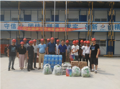 7月17日-7月27日,安徽二建公司總經(jīng)理許業(yè)勇、黨委書記劉賢奇等領(lǐng)導(dǎo)班子成員頂高溫、冒酷暑,分別對(duì)所屬23個(gè)自營(yíng)項(xiàng)目部開展“送清涼”慰問(wèn)活動(dòng)。為在高溫下仍堅(jiān)守工作崗位的一線人員送去了綠豆、白糖、茶葉、香皂、驅(qū)蚊花露水、風(fēng)油精、人丹、藿香正氣丸等防暑降溫物品,感謝他們戰(zhàn)高溫,付出辛勤汗水確保公司生產(chǎn)穩(wěn)定發(fā)展。