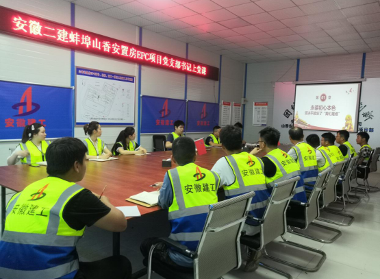 8月11日上午,蚌埠山香安置房EPC項(xiàng)目黨支部開展書記上黨課活動,項(xiàng)目部全體職工參加。