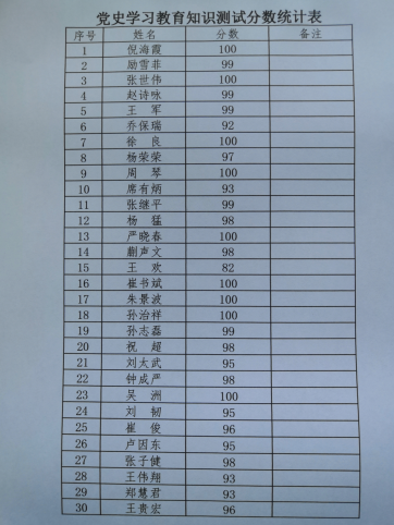 為充分學(xué)深、弄懂、悟透“四史”,永葆初心、勇?lián)姑R环止军h支部于6月1日組織開(kāi)展黨史學(xué)習(xí)教育知識(shí)測(cè)試活動(dòng)。通過(guò)測(cè)試,分公司全體黨員堅(jiān)定信念,銘記歷史,不忘初心,知史愛(ài)黨,知史愛(ài)國(guó)。
