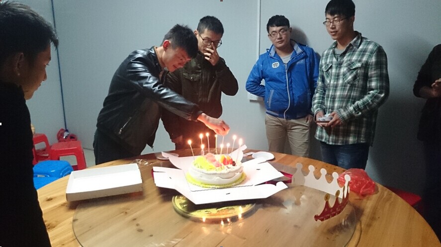 “祝你生日快樂!祝你生日快樂!”“許個(gè)愿吧”;“謝謝大家,謝謝楊經(jīng)理及大家的關(guān)心,沒想到在外地還能過上這么溫馨的生日,真的令我很感動(dòng)”,李森激動(dòng)的說。11月11日,伴隨著”生日快樂“的樂曲,安建.龍溪山莊項(xiàng)目部員工李森許下了美好的愿望并吹滅了蠟燭。這是宿松安建龍溪山莊項(xiàng)目部一個(gè)動(dòng)人的場(chǎng)景。