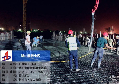 蚌埠地區(qū)因受臺風影響,連續(xù)的暴雨天氣對施工造成很大影響,項目部立即組織搶險小組,對基坑、地下室等部位加強排水和安全檢查,保障施工進度不受影響。暴雨過后,蚌埠迎來了炎熱的高溫天氣,項目部調(diào)整作息時間,認真落實防暑降溫各項保障工作,利用早晚時間段進行搶工,使項目的大干氛圍不因特殊天氣有絲毫懈怠。項目部嚴格按照施工進度計劃組織生產(chǎn),在抓好安全管控、質(zhì)量管理、疫情防控的前提下,抓住當前有利天氣,搶抓施工黃金期,合理安排人材機的投入,推動各道工序穿插進行,不斷推進施工進度,不斷提高整體施工效率,以施工進度為主線,以爭創(chuàng)產(chǎn)值為目標,積極調(diào)動項目管理人員及分包隊伍的積極性,全體員工以高度的責任感和積極向上的精神風貌,全面掀起了勞動競賽大干熱潮,施工現(xiàn)場呈現(xiàn)一片熱火朝天的繁忙景象。