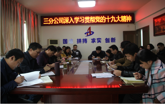 11月24日下午,安徽二建三分公司黨支部組織全體黨員專題學習貫徹黨的十九大精神,領(lǐng)會精神要義,提升工作水平,著力推進年度各項工作。