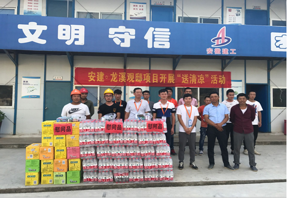 炎炎夏日高溫?zé)o情,絲絲涼意公司有愛。自7月以來,氣溫持續(xù)升高,為應(yīng)對高溫酷暑天氣龍溪觀邸項(xiàng)目部積極采取有效措施,及時(shí)開展夏季“送清涼”慰問活動(dòng),充分體現(xiàn)了項(xiàng)目部對廣大參建員工和農(nóng)民工的關(guān)愛。