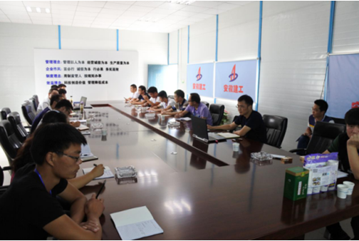 葉和永一行參觀了安建·楓林源筑標段項目部辦公區、生活區,檢查了施工現場,詳細詢問了項目生產情況和職工生活、學習等情況。項目負責人潘澤強對工程概況、項目組織體系、前期工作和下一步工作計劃進行了匯報。公司相關部門結合項目實際分別就“三位一體項目管控體系”、“七化”管理、公司相關規章制度、工作流程、工作要求等內容對項目部全體管理人員進行了系統交底;與會人員還就項目策劃工作進行交流討論,對項目主要管理目標、現場平面設計、資源配置方案、項目組織機構等內容進行充分討論并提出意見建議。
