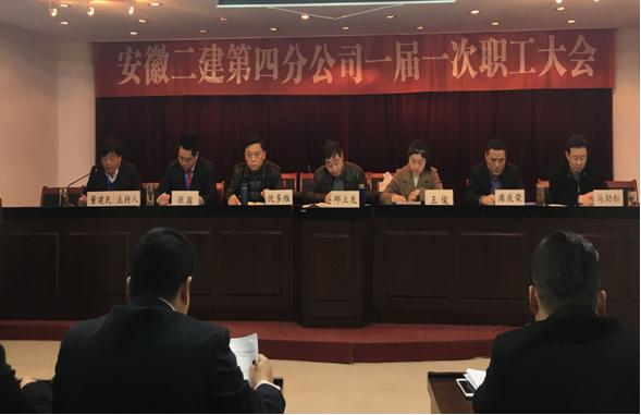 乘風破浪推發展,勠力同行齊奮進。為加快轉型升級步伐,優化內部管理機制,客觀分析當前四分公司面臨的形勢,認真學習貫徹落實安徽二建公司十五屆四次職代會精神,凝心聚力抓好2017年度各項工作,320日上午,安徽二建四分公司一屆一次職工大會在三樓會議室隆重召開。公司總工程師邱立龍、紀委書記仇多維、女工主任王俊以及四分公司職工近40人參加了會議。