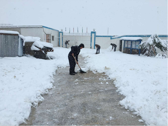 近日,阿爾及利亞康斯坦丁接連下了幾場大雪,雪花翩躚飛舞,康斯坦丁大地一片銀裝素裹。為了防止路面結冰,方便人員出行,119日早晨,在項目部經理章恒旭的帶領下,康斯坦丁6000套項目部全體管理人員頂風冒雪、齊心協力上路清理項目部院內及道路積雪。