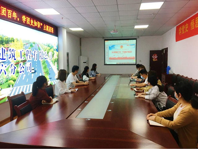 今年是中國共青團建團100周年,為學習黨領導青年運動的光輝歷程,增強團員青年永遠跟黨走的信念。4月26日,第六分公司團支部組織團員青年開展了“慶建團百年 學團史知識”主題團課。