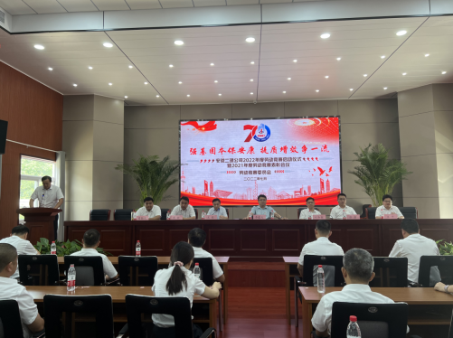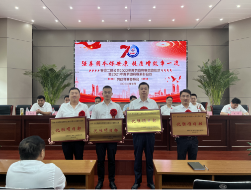 7月7日上午,安徽二建公司舉行了“強基固本保安康 提質增效爭一流”2022年勞動競賽啟動儀式暨2021年度勞動競賽表彰會議。公司領導出席會議,勞動競賽委員會成員、所屬各單位主要領導、分管生產及質量副經理、工會主席、工程管理科、安全科全體人員、參賽項目經理代表等共80余人參會。會議由黨委副書記、工會主席王軍主持。