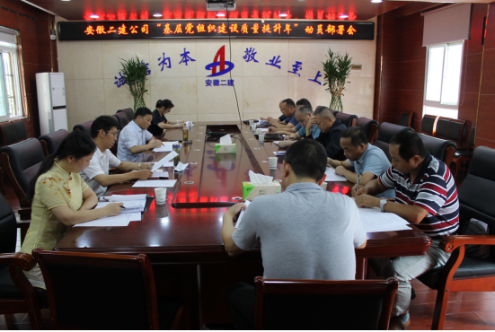 9月2日上午,安徽二建公司在一樓會議室召開了“基層黨組織建設(shè)質(zhì)量提升年”活動(dòng)動(dòng)員部署會,公司黨委副書記、工會主席王軍主持會議并做工作安排,黨委工作部主任、所屬各黨支部書記參加會議。