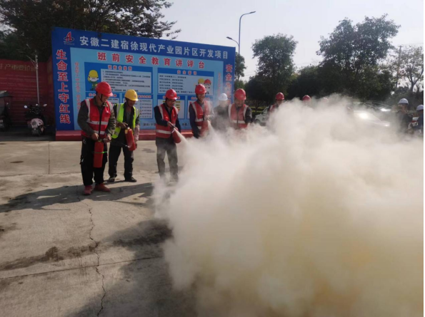 11月3日,為全力推進消防平安城市達標創建工作,進一步加強建筑工地消防安全管理,嚴防建筑工程施工現場火災事故發生,第四分公司宿徐現代產業園項目邀請建設單位、監理單位開展消防應急演練活動。