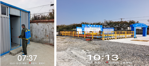 肥東黃栗基地每天拿牌進出人員核驗、掃碼、測溫、登記工作。